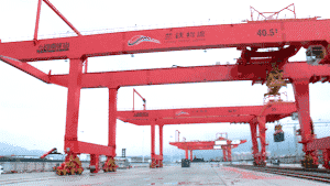 蘭州國際港務(wù)區(qū)以蘭州東川鐵路貨運站、蘭州鐵路集裝箱站、蘭州公路集裝箱站和蘭州保稅物流(B型)為主體,是具有多式聯(lián)運方式港口功能的國際港務(wù)區(qū),是"一帶一路"經(jīng)濟帶上國際貿(mào)易的樞紐港,"外引內(nèi)聯(lián)、東聯(lián)西出、西來東去"的合作平臺,連接中亞、西亞和歐洲市場的綜合物流,助推"絲綢之路經(jīng)濟帶"建設(shè)的重要支點。承擔(dān)著中亞國際班列、中歐班列、南亞多式聯(lián)運班列的貨物中轉(zhuǎn)及裝卸任務(wù),這兩臺集裝箱起重機正式投入使用,大大提升了國際港口的吞吐能力,也打破了這種大型港口機械,一直由國內(nèi)大型國企壟斷的局面。